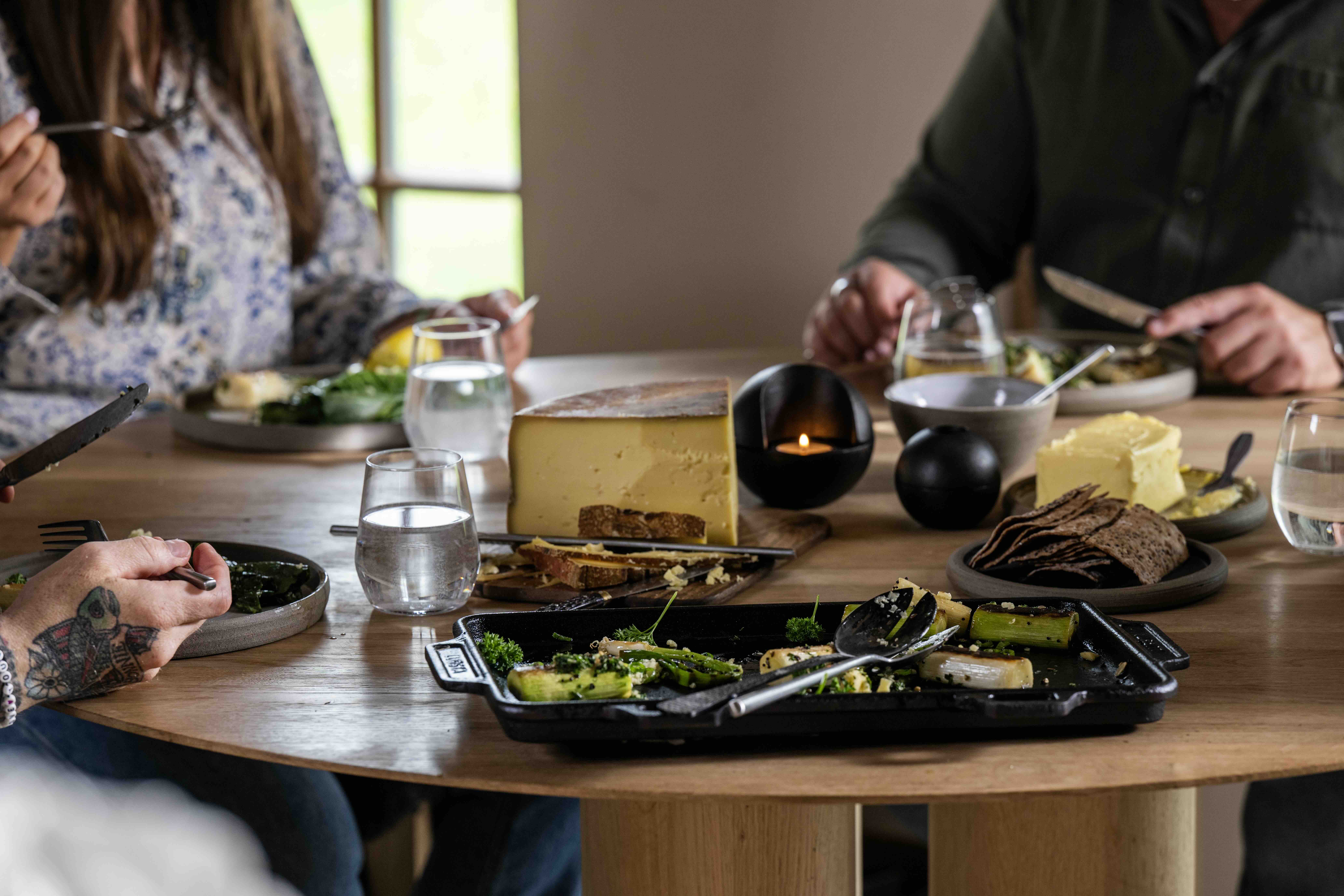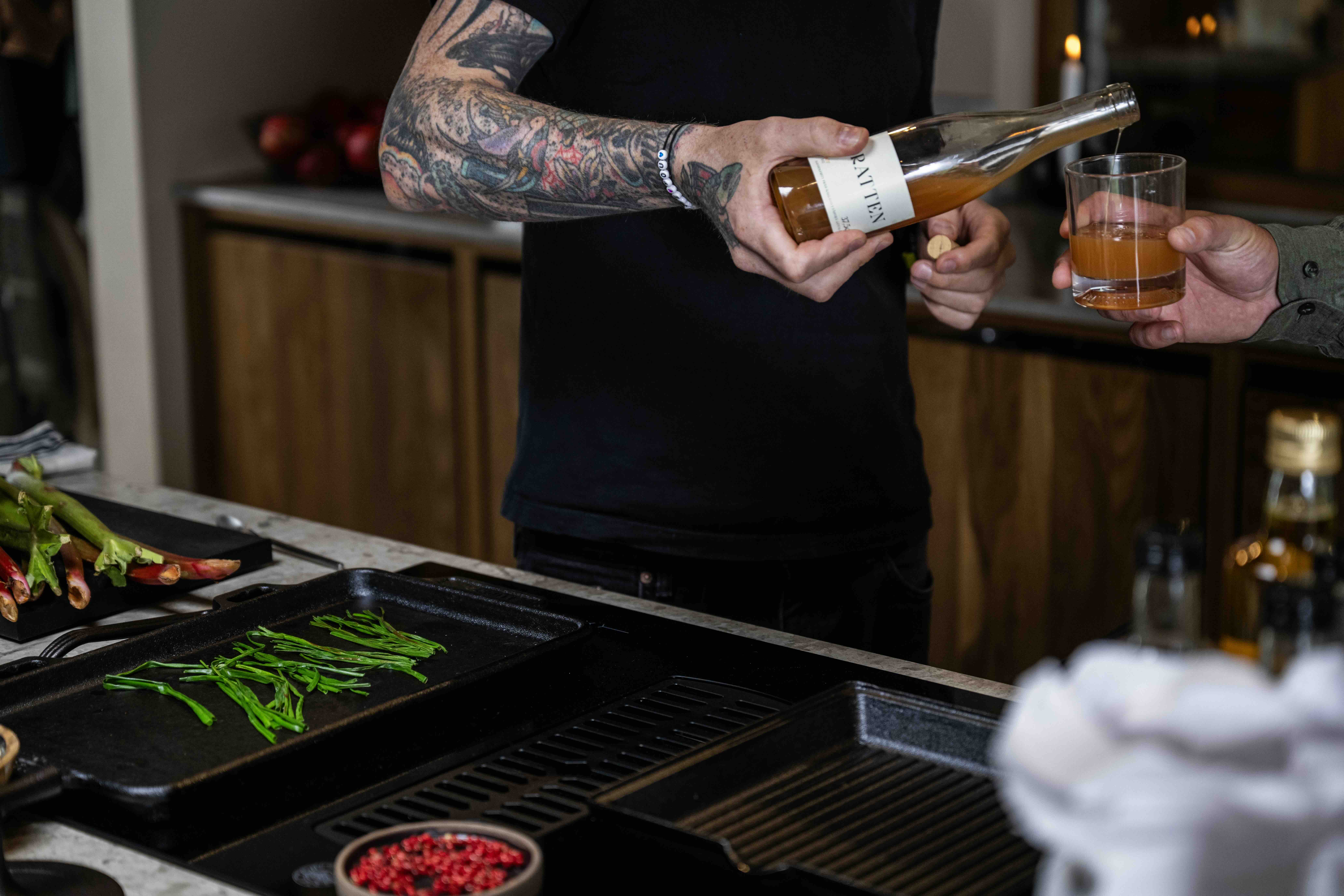 Lägg gräslöken direkt på en het stekhäll eller grillpanna – låt den få färg, riktigt ordentligt. När den svartnar lätt i kanterna kommer smaken fram på ett sätt som nästan känns hemligt.