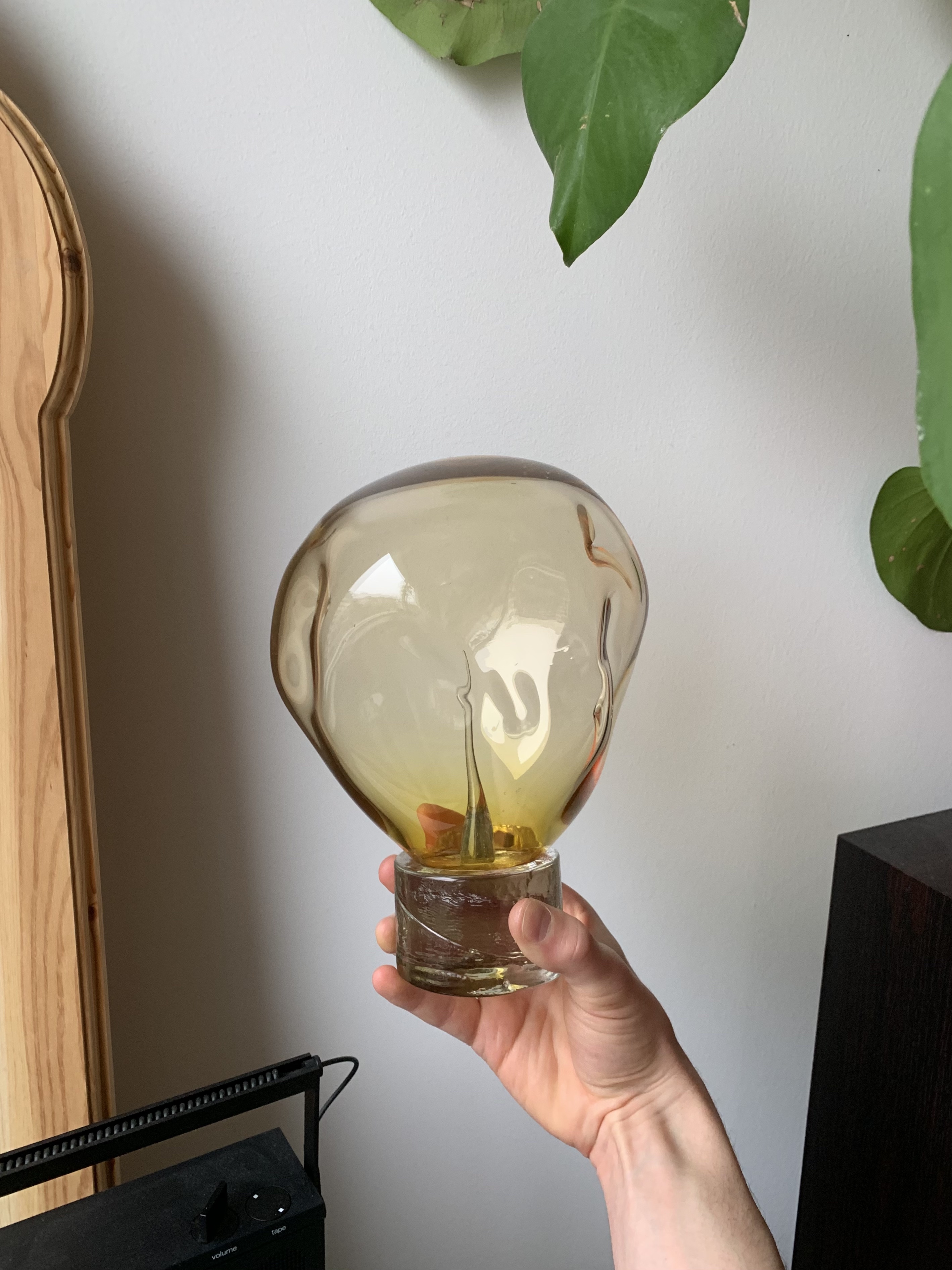 Statyetten som delades ut vid prisutdelningen är handblåst och har formgivits av Marie-Louise Hellgren.